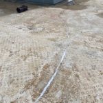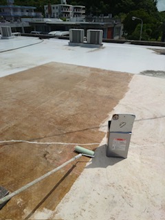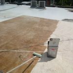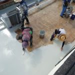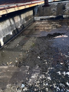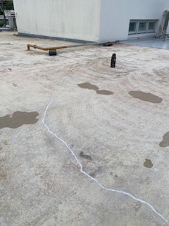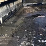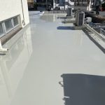 旧防水シートを剥がしてクラック補修後、ウレタン防水工事をしました。